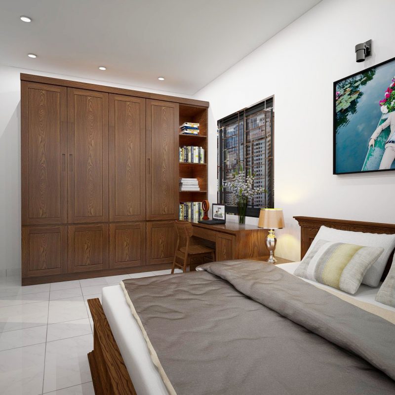 Ô trang trí chia 04 khoang ( Thêm 01 ngăn dưới tủ áo góc bàn làm việc )